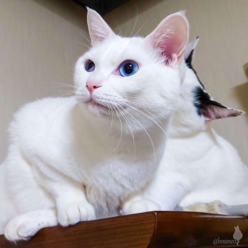 兄ちゃんが舐めてくれているけど あっちの方向が気になる白猫Ryuで おやすみなさい💤 Caturday 土アップ祭 猫部 @catclub.bsky.social — from Bluesky 2023-11-25