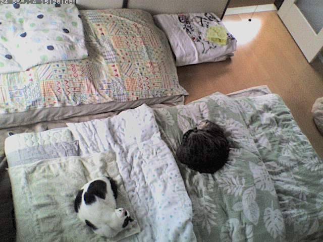 << lan “おしりになんかくっついてる!” めずらしく? 初めて? coco が布団で寝ています。 lanちゃん我慢できなかったみたい?? mark は知らんぷりですね。 << mark & coco now zzz… lanちゃん~!! 2014-09-24