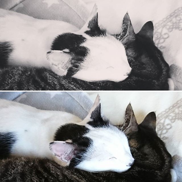 先程のういろうpicをcoco側から撮った写真📷 同じ体勢なのに雰囲気がずいぶん違う感じ😁 これをオリジナルとういろう加工で並べてみたけど、cocoのお耳が少しピンクかなぁ🤔くらいしか違わないですね😆 遊んじゃいました🤣 #cats #catstagram #ねこ #ねこすたぐらむ #にゃんすたぐらむ #猫 #ねこ部 #もちぽよ部 #ペコねこ部 #みんねこ #黒さば #黒きじ #きじとら #とら猫 #白黒猫 #ヅラ猫 — from Instagram 2017-02-13