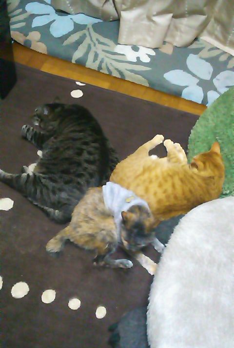 ブログ公開記念 まずはお約束のうちの子らを紹介します。 zizi ♀ 20歳 サビ 1990/8/2🎂 lan ♀ 6歳 茶トラ 2004/5/5🎂 mark ♂ 6歳 黒サバ 2004/5/5🎂 lanとmarkは姉弟、ziziとは血縁ないけどそれなりに仲良し 正確なお誕生日🎂はわからないので保護日近辺の記念日で 2011-01-25