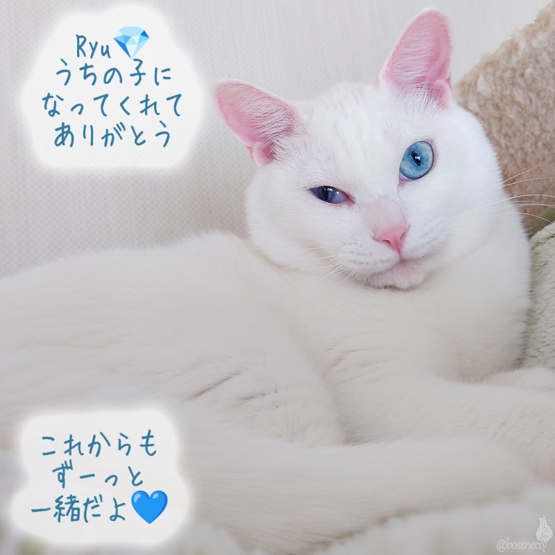 11月2日は白猫Ryu 2回目の✨うちの子記念日✨ うちの子になってくれてありがとう💖 Ryu♡ これからも元気で♪ みんなと仲良く楽しく過ごそうね♡ ずっとずっと一緒だよ💞 — from Bluesky 2023-11-02