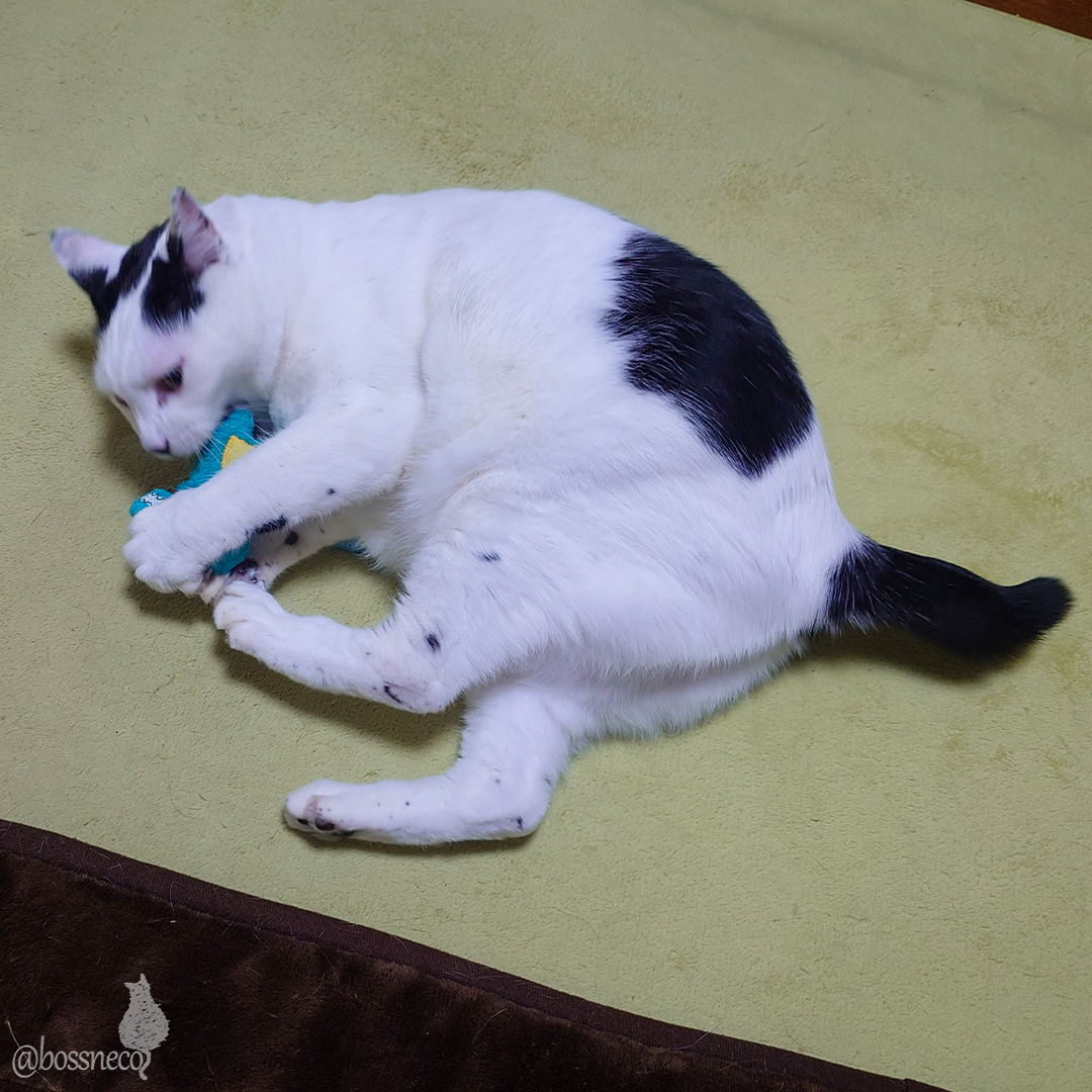 ご飯までのまったりタイム 長男coco おもちゃでハッスル中🌀 #Blueskyねこ部 #CatsofBlueSky #CatsofBSky #catsky #catlovers — from Bluesky 2025-12-05