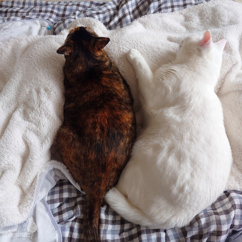 寒いですね☔ でもそのおかげでお団子できました♡ ブランケットの中にふたりと上にふたり #Blueskyねこ部 #CatsOfBlueSky #楽しい我が家 #こんな毎日が大切 — from Bluesky 2025-04-13