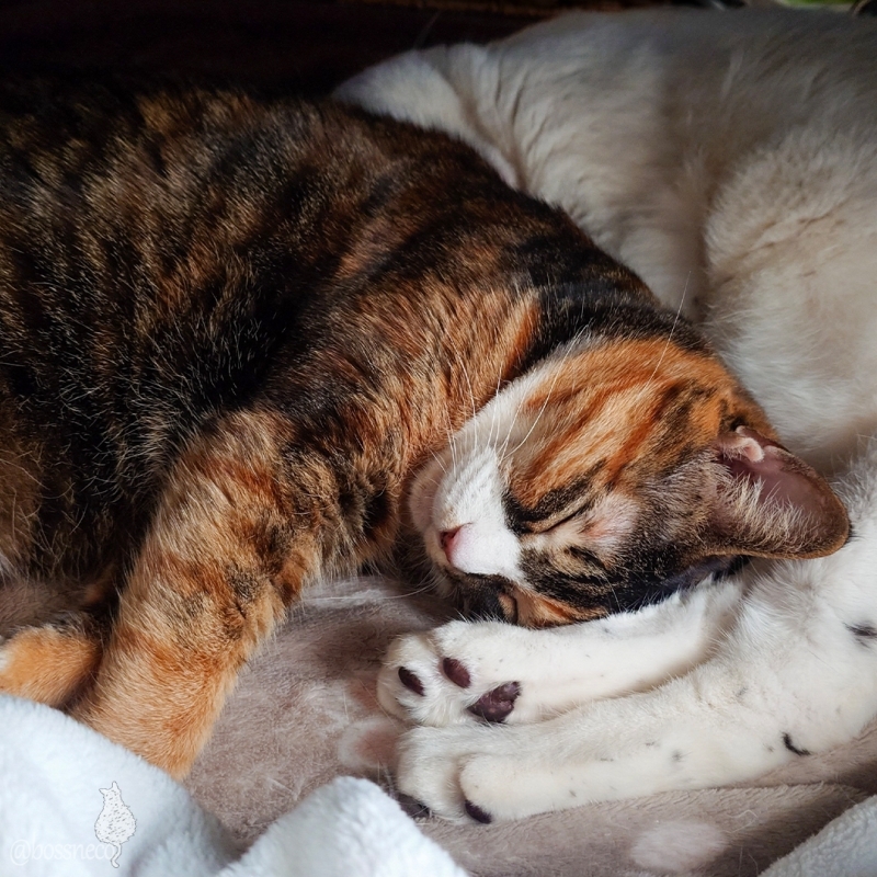 週明けで忙しい私の足元と横で ぐっすりお昼寝中の子たち 私も眠たくなってきました #Blueskyねこ部 #CatsofBlueSky #CatsofBSky #catsky #catlovers — from Bluesky 2026-02-24