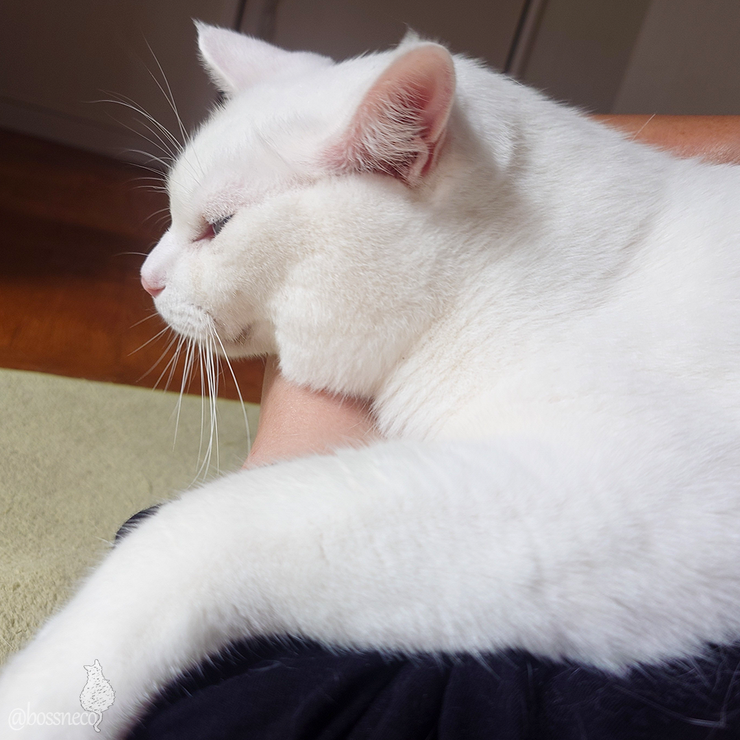 暇そうにしてたので お腹の上に乗せてみたら 寝ちゃう? ちょっと重いです.. #Blueskyねこ部 #CatsofBlueSky #CatsofBSky #catsky #catlovers — from Bluesky 2025-09-15