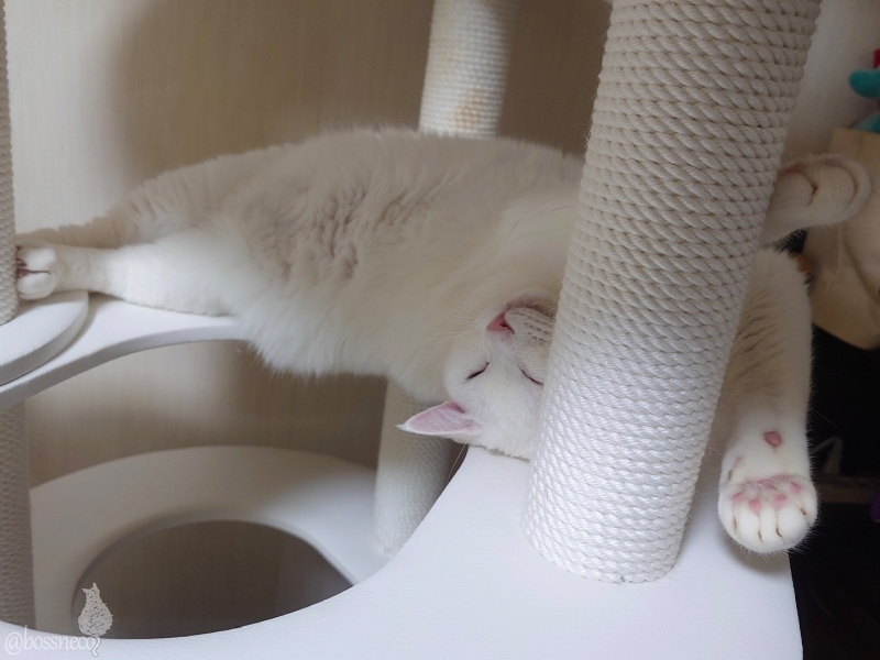 寝姿が楽しい子 な、だけじゃなくて お食事中のあんよもおもしろいわฅ おやすみなさい💤 #Blueskyねこ部 #CatsofBlueSky #CatsofBSky #catsky #catlovers — from Bluesky 2025-10-22