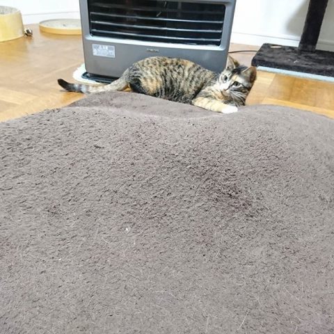 もっこりしたラグの下は…