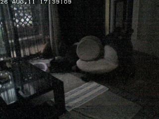 lanはカーテンのところ、markはいつものベッドでまんまる。
