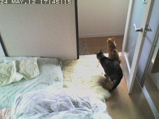 24日木曜日の夕方の風景。 << lan & mark now !? なぜか2匹ともにドア付近に集まってる! 階段の下を見てるけど、誰かいるのかな? それとも、私の帰りを待ってる? いつも、玄関を入ると階段の上か下で『おかえり!』って言ってくれているように、待っててくれる。 それが うれしい! 2012-05-24