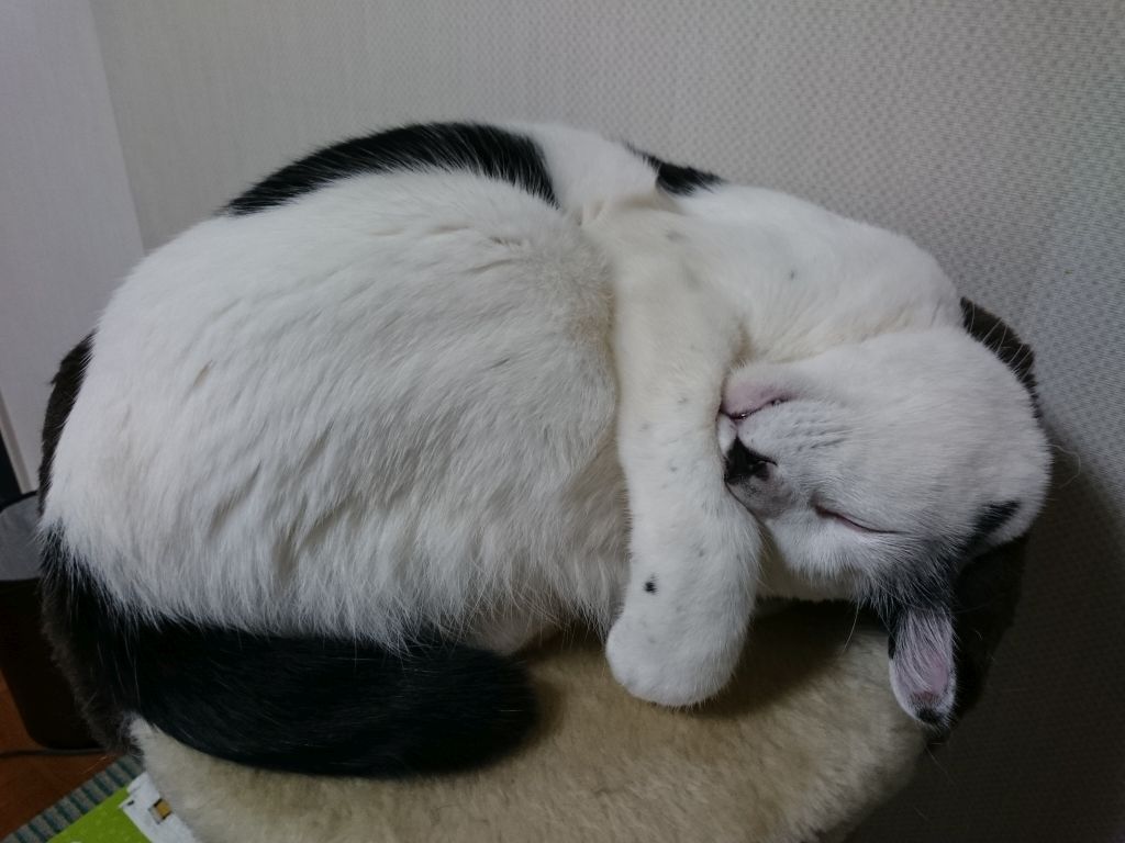 coco お気に入りのベッドはここ。 家ネコになったときに買ってあげてから使ってるけど、そろそろ小さくないですか? まんまる! これはこれでいいのかな? mark は床にドベーって寝るのが好き。 ホカペのぬくもりが暖かいからね。 お腹のもふもふが無防備過ぎます。 mark >> まぶしい~ 2016-01-11