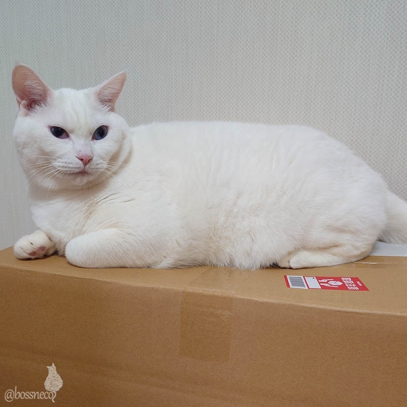 Ryuお部屋に戻ったらお箱を守っている白猫Ryu