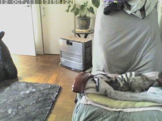 今週が始まって2日目 ってのに、なんかだれていて仕事に集中できない。気持ちがここにない。 ここ数日毎晩 夢を見る。 それも怖くて途中で目が覚める.. 内容は…覚えてないけど、怖くて起きたことだけ覚えてる。 このだれさ加減は そのせいかなぁ..。 今日も早く帰ってみんなで だらだらしよう。 << zizi now pote 朝元気がなかったみたいで心配してたけど、ziziも眠いだけ? 寝るのにちょうどよい気温だね。 << zizi now zzz… 気持ちいいよね~~~~ 私もそこで一緒に寝たい! 2011-10-12
