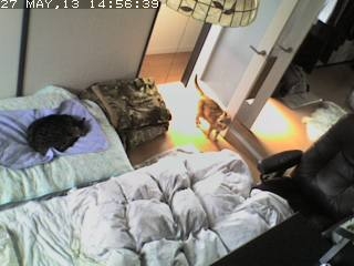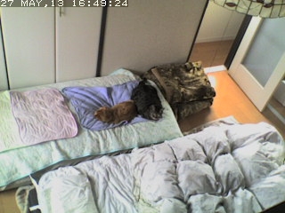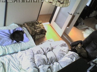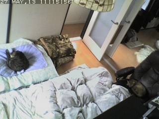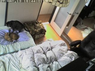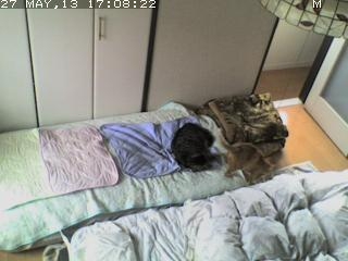 mark お気に入りの場所に置いていたマットが、ちょっと小さい感じがしていたので、昨日Wサイズの新しいマットに交換。 気にいってくれて、相変わらず ずっぽりとはまっていたのに… lanちゃんだってちょっと気になる… いいなぁ..って思ってたのかなぁ… mark がちょっと下に行ってた隙に!! 見つめ合っちゃってるけど、ここは mark が大人の(?)対応(我慢) 仲良しじゃないよ… お互いに我慢してるんだよね。 となりのマットじゃ、ダメなのかなぁ? あ! mark の勝ち! lanちゃんがちょっとかわいそう.. ちょっと考えてあげなくちゃね。 2013-05-27