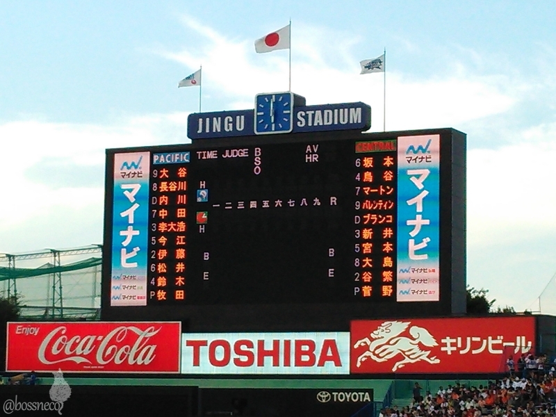昨日車中での会話で 昔観に行ったオールスター戦⚾️に大谷くんいたよね? って話になったので当時の写真を確認してみたら たぶんこれが大谷くん!を発見 マートン🐯大好きだったわ♡ マツダオールスターゲーム2013 神宮球場にて #どうでもいい話 — from Bluesky 2025-10-14