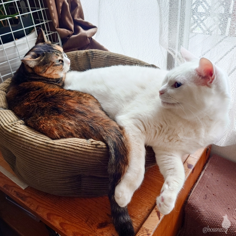 末っ子Ryuが寝ていたところに縞三毛お姉様が突入
