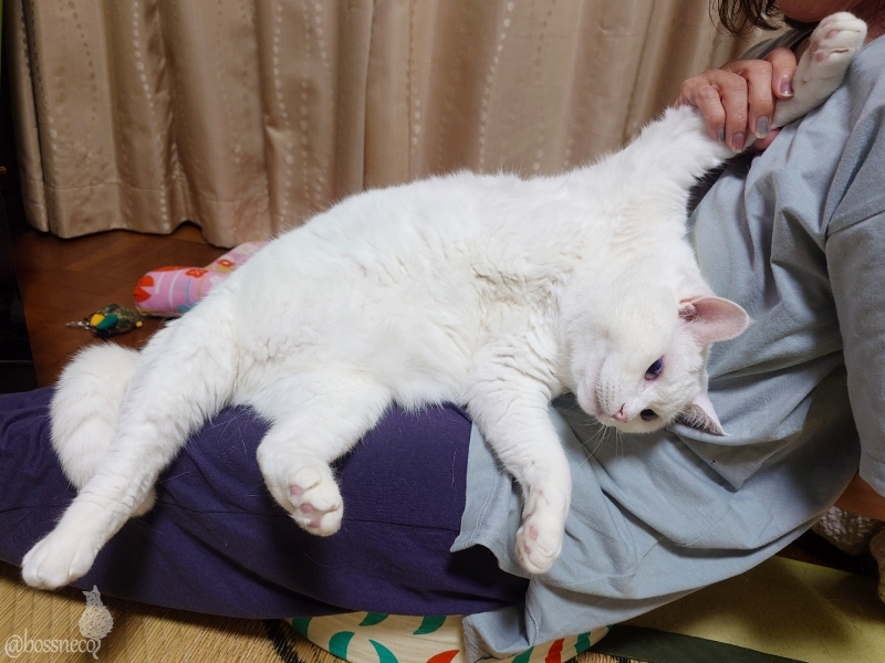 遊ばれて ぶすっくれてる白猫Ryu おやすみなさい💤 #Blueskyねこ部 #CatsofBlueSky #CatsofBSky #catsky #catlovers — from Bluesky 2025-08-04