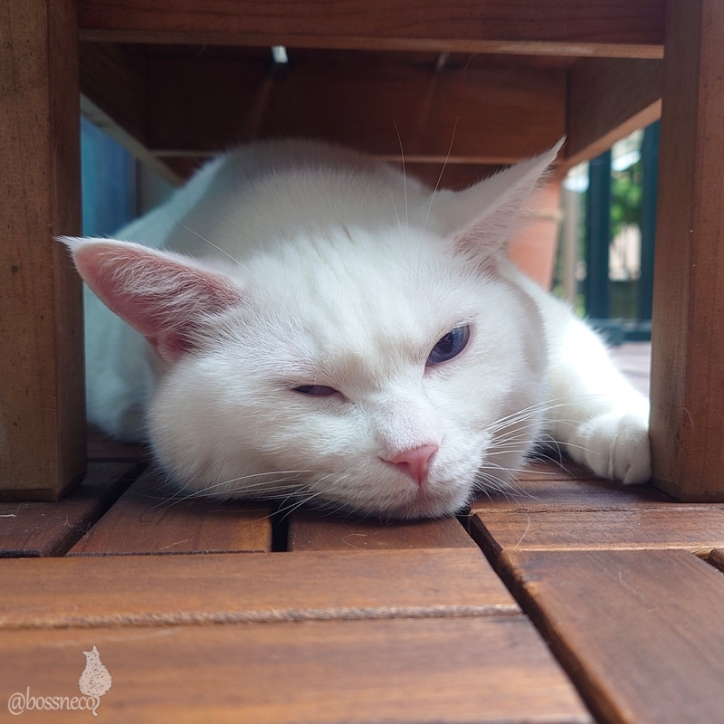 どこにいるのかと思ったら ぺしゃんこになってた白猫Ryu #Blueskyねこ部 #CatsofBlueSky #CatsofBSky #catsky #catlovers — from Bluesky 2025-08-12