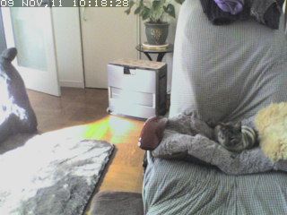 今朝 自宅でWeb Cameraをチェックしてから 出勤今日は大丈夫。 これから毎日チェックかなぁ… 最近何回かこんなことになる。 無線LANが悪いのかなぁ.. 有線に変えた方が確実かな? ハードウェア問題だったらやだなぁ << zizi now poke 今日はお天気いいね。 << zizi now ん? 何みてるの~? 2011-11-09