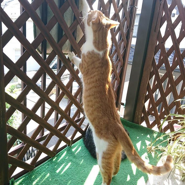 Linが来ないなぁって探しに行ったら階段上の窓にへばりついてました😆