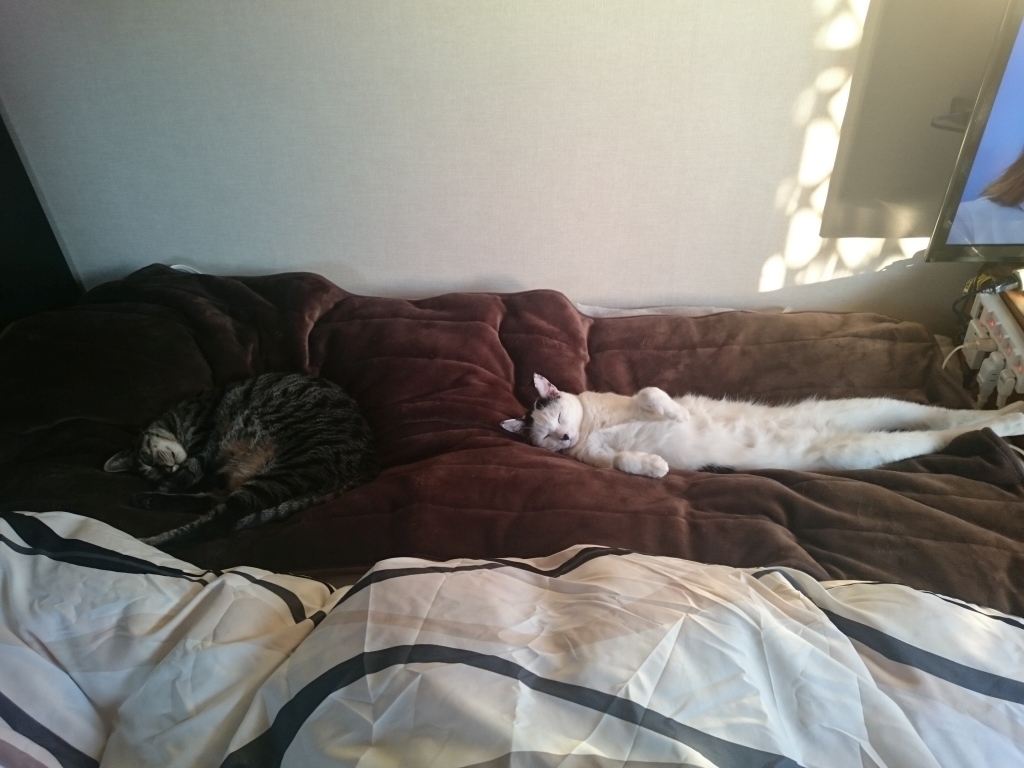 くっついてきた lanちゃん。 片手のカメラ操作はちょっと難しいんです。 気持ちよさそうに爆睡の mark 気持ちよさそうに爆睡の coco … …… どうなんでしょ… (長いよね??) からの~ ぴよ! (踊ってる??) 2014-12-07