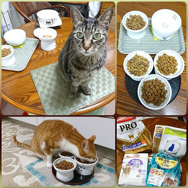 cocoたちは、ヒルズの「サイエンスダイエットPRO 健康ガード 避妊・去勢 避妊去勢後」、ピュリナワンの「避妊・去勢した猫の体重ケア」、ロイカナの「FHN アペタイトコントロール ステアライズド」を、それぞれがその時の気分で食べてます。