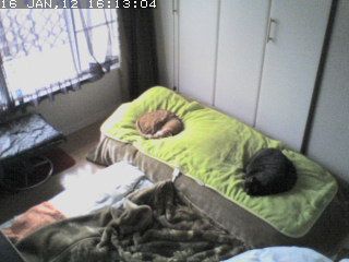 ぽけーっとしていたから、Web cameraを動かしてみたら、反応してこっち見た!