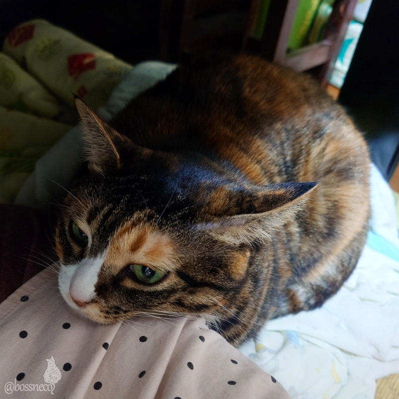 お膝でアゴ枕してくれているお嬢様Lin こんな日が来るなんて 幸せ~♡ おやすみなさい💤 #Blueskyねこ部 #CatsofBlueSky #CatsofBSky #catsky #catlovers — from Bluesky 2025-08-13