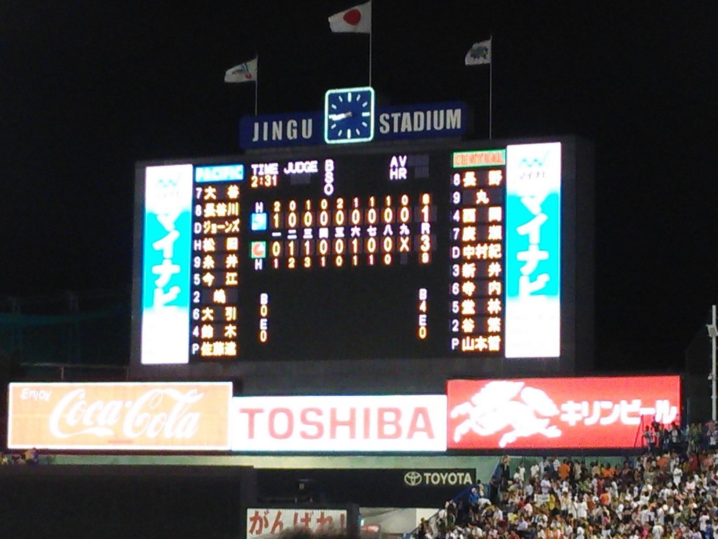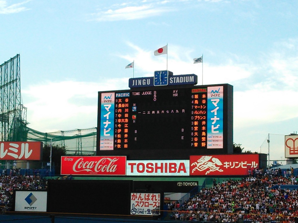 7回の表と裏では、セ・パ両軍の全応援歌のメドレーが流れて、スタジアム大盛り上がり!