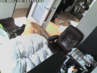 ノートPCでカメラの映る範囲を確認しながら、以前に買っておいたスタンドを天井に設置。