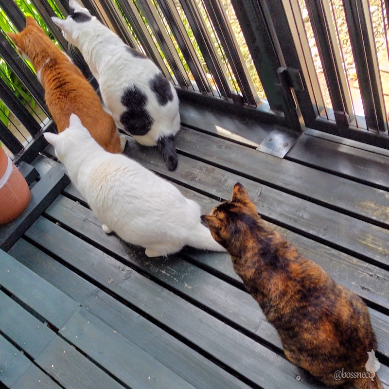 今日もカラスさん来た! #ねこ部 #猫部 @catclub.bsky.social #猫部警備隊 #ベランダニャルソック 隊員番号23,24,25,26番 — from Bluesky 2024-05-15