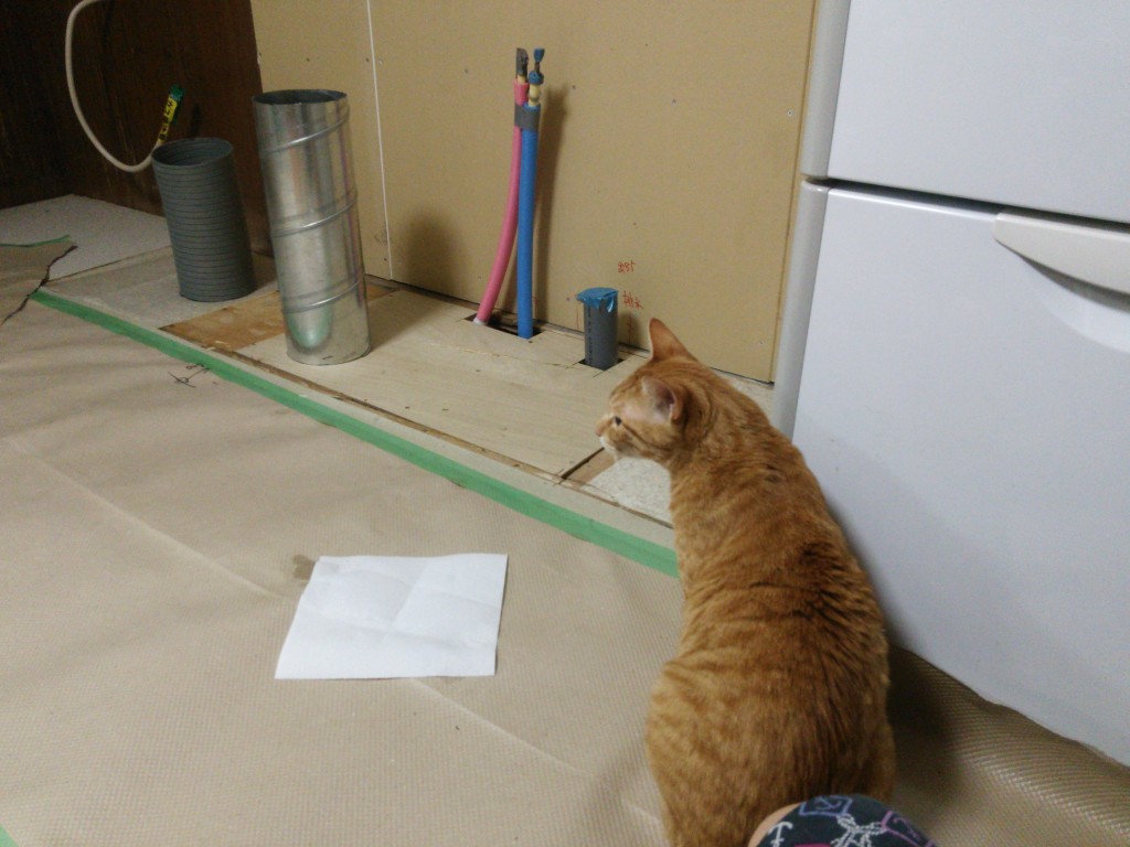 隣の貸家に住んでいた家族が引っ越したので、内装リフォームを実施中。 素敵なキッチンが入ったので、ついでにうちのも取り替えてもらうことにしました。 今日古いキッチンを撤去して、明日新しいのが入ります。 キッチンがトイレ代わりだった lan ちゃん、 ちょっと戸惑ってます。 << lan “トイレはどこ??” 明日朝に新しいキッチンが入るから、養生はそのままで そう言って業者の人が帰ったけど、部屋にひきつめてある養生シートが無事であることは保障できません。 2014-08-09