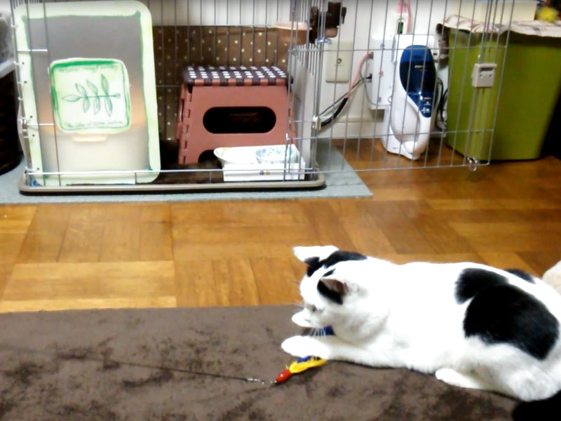 出かけるときと夜寝る時は、まだ coco にはゲージに入ってもらってるけど、そろそろケージの撤去を考えなくっちゃ…。 ケージに入れられることがわかると、逃げてまわってちょっと可愛そう。 GWを目標にちゃんと考えよう。 << lan & mark now !! mark おもしろいカッコ << lan & mark now peropero 仲良し! coco を出してもよいよね? 2014-04-17