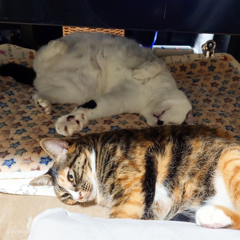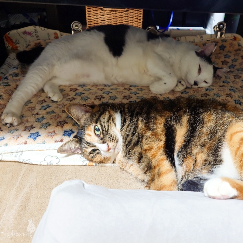 ホカペでゴロゴロ🌀 気持ち良いね♪ ゴロゴロしている長男と 動じないお嬢様 なんかおもしろいわ で、おやすみなさい💤 #ねこ部 #CatsOfBlueSky #楽しい我が家 #こんな毎日が大切 — from Bluesky 2024-11-04