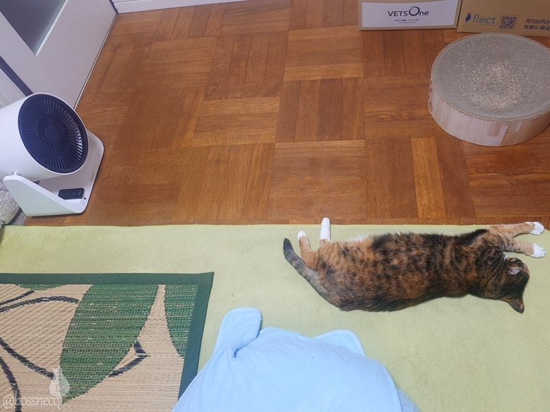 サーキュレーターの風を横に感じているお嬢様 おやすみなさい💤 #Blueskyねこ部 #CatsOfBlueSky #楽しい我が家 #こんな毎日が大切 — from Bluesky 2025-06-18