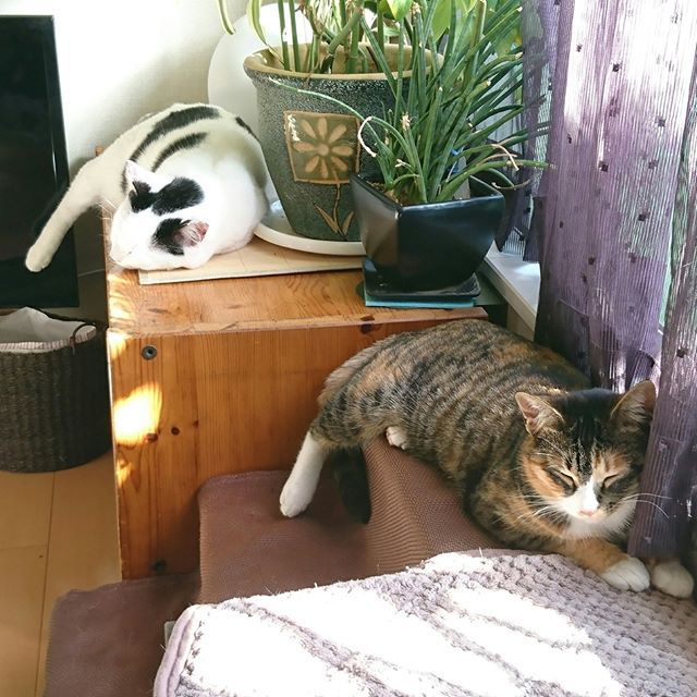 ぽっかぽかな土曜日☀ cocoとLinがアンヨをシンクロさせて寝てるから このまま #シンクロ祭 行ってらっしゃい🏮 #cats #catstagram #ねこ #ねこすたぐらむ #にゃんすたぐらむ #猫 #ねこ部 #もちぽよ部 #ペコねこ部 #みんねこ #とら猫 #白黒猫 #縞三毛 #しまみけ — from Instagram 2017-02-04