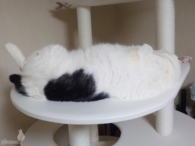 そこでヘソ天ですか?! 落ちないようにね おやすみなさい💤 #Blueskyねこ部 #CatsofBlueSky #CatsofBSky #catsky #catlovers — from Bluesky 危ないので起こしておきました 2025-11-10