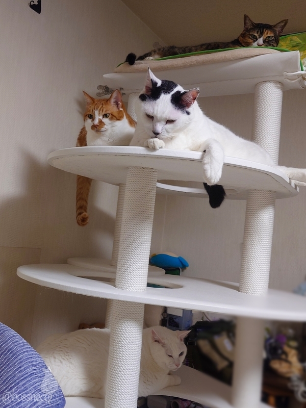 久しぶりにタワーに集合 そろそろ寝ましょうね おやすみなさい💤 #Blueskyねこ部 #CatsofBlueSky #CatsofBSky #catsky #catlovers — from Bluesky 2025-09-28