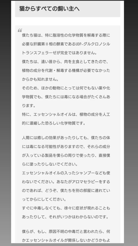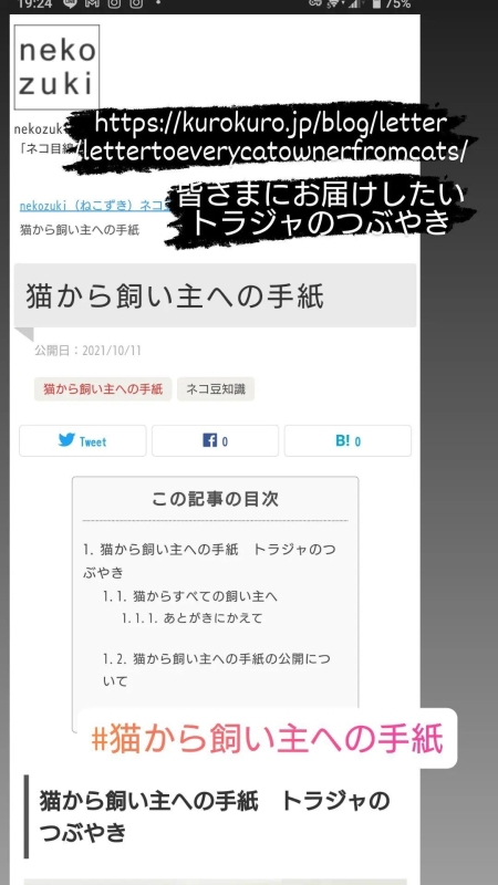 nekozukiさんからのメールで知った 「猫から飼い主への手紙 トラジャのつぶやき」という記事 アロマもユリもにゃん子にダメ❌なこと 猫飼いさんは知っていてあたりまえのこと こういう記事が拡散されるといいな 猫から飼い主への手紙 トラジャのつぶやき — from Instagram 2021-10-16