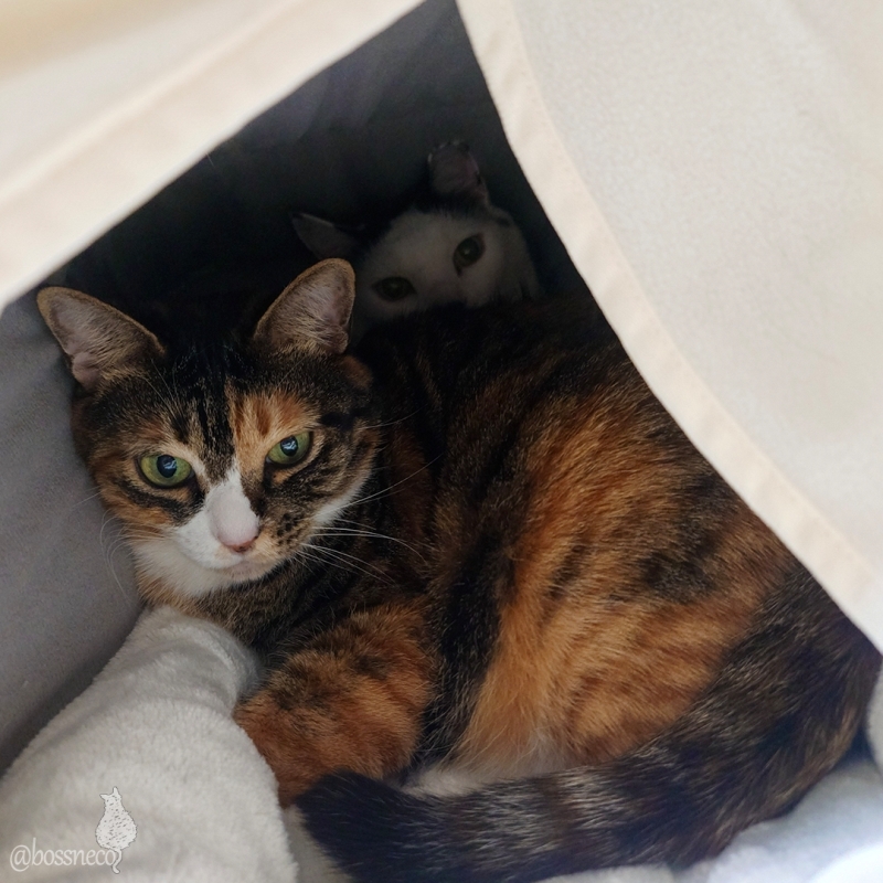 寒そうにしていたので キャットタワーの台座にドームベッドを置いてあげました さっそくふたり仲良く詰まってます おやすみなさい💤 #Blueskyねこ部 #CatsofBlueSky #CatsofBSky #catsky #catlovers — from Bluesky 2025-09-24