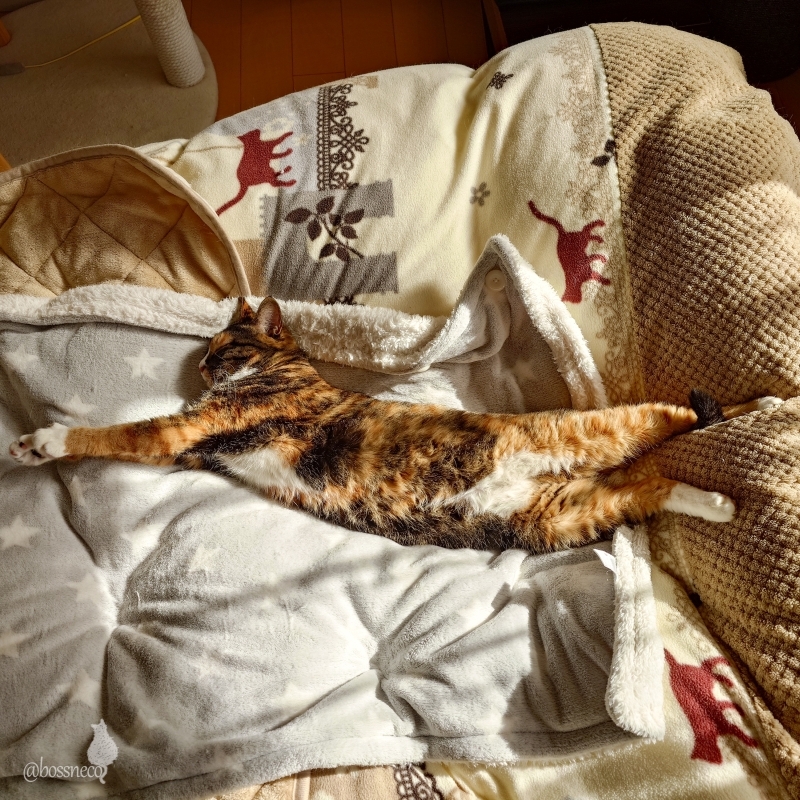 鳥さん来た! ニャルソックに励む男の子ズと お布団でのびのびのお嬢様 #ねこ部警備隊 #Blueskyねこ部 #CatsOfBlueSky #楽しい我が家 #こんな毎日が大切 — from Bluesky 2024-12-21