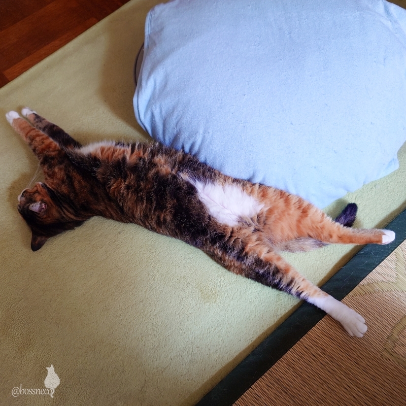 ニャルソックはおしまいにしてください! お嬢様はすでにエアコン下でヘソ天♡ #ねこ部 #猫部 @catclub.bsky.social #楽しい我が家 #こんな毎日が大切 #毎日が猫祭 #猫好きさんと繋がりたい — from Bluesky 2024-07-23