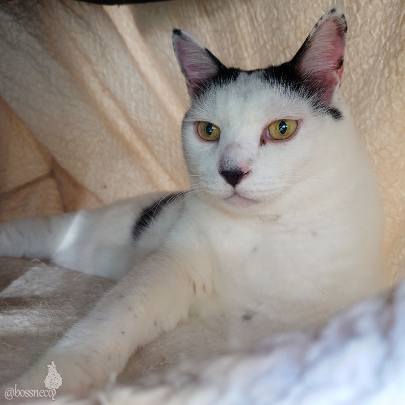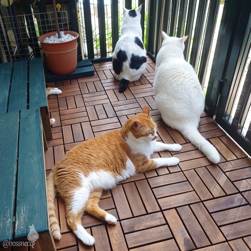 ニャルソックを早々に切り上げて お気に入りの椅子カバーに吸い込まれた白黒coco 茶白fumiのお手手が太い! よく見たら白猫Ryuのおしっぽでした #Blueskyねこ部 #CatsOfBlueSky #楽しい我が家 #こんな毎日が大切 — from Bluesky 2025-07-10