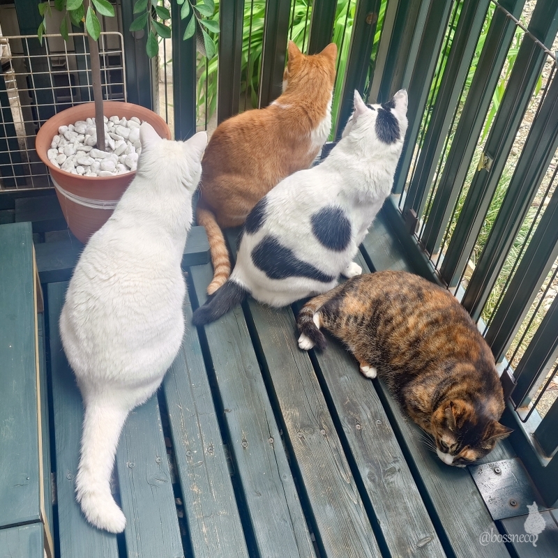 のんびりニャルソック なにか来た! カラスさん🐦⬛ #猫部 @catclub.bsky.social #楽しい我が家 #こんな毎日が大切 #毎日が猫祭 #猫好きさんと繋がりたい #猫部警備隊 #ベランダニャルソック 隊員番号23,24,25,26番 — from Bluesky 2024-05-08