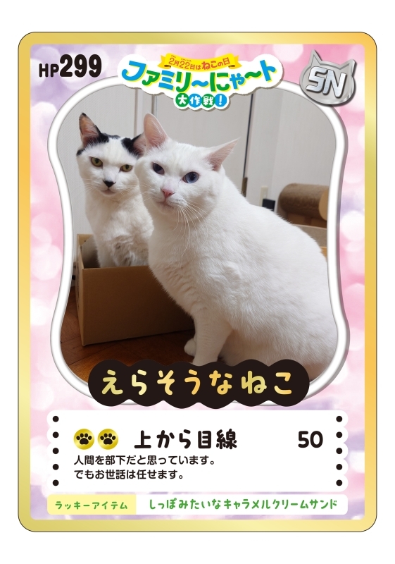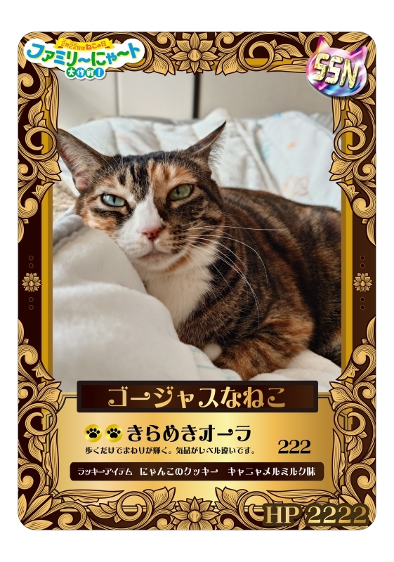 ファミリーマート特設サイトでねこさんの写真をアップロードするとオリジナルトレカ画像が作成できる そんなうたい文句に誘われて作ってみた もしやLinのゴールドカードは強いのかな? って.. トレーディングカードってよく知らないけど🤣 2026-02-13