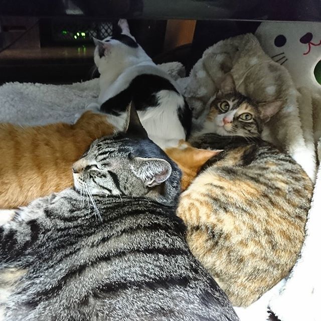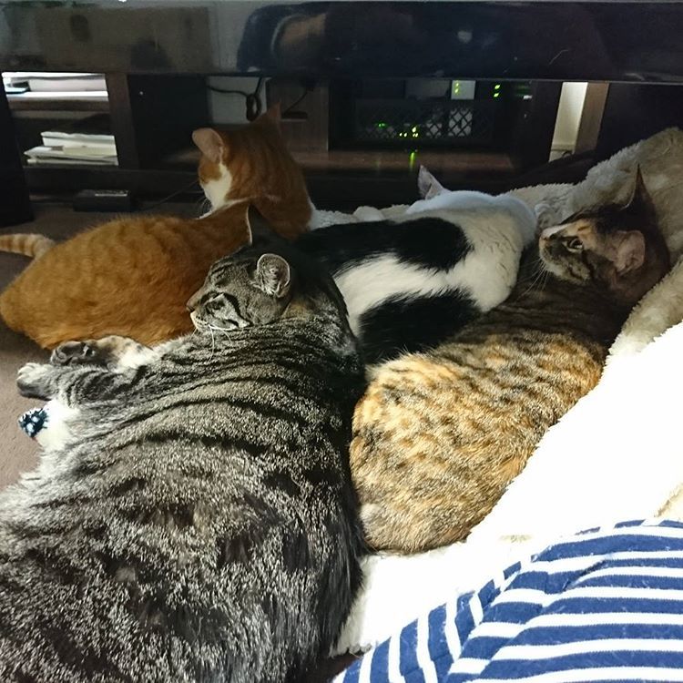 みんなでまったりオマタにゃん子🐱🤗 早く暖かくなってほしいけど…🌸 団子率下がっちゃって📉この姿が見られなくなるのは少し寂しいなぁ🍡🙄 #フニャ27祭 #catstagram #ねこ #ねこすたぐらむ #にゃんすたぐらむ #猫 #ねこ部 #もちぽよ部 #ペコねこ部 #みんねこ #黒さば #黒きじ #きじとら #とら猫 #白黒猫 #しろくろ #ちゃしろ #茶白猫 #縞三毛 #しまみけ #猫団子 — from Instagram 2017-03-27