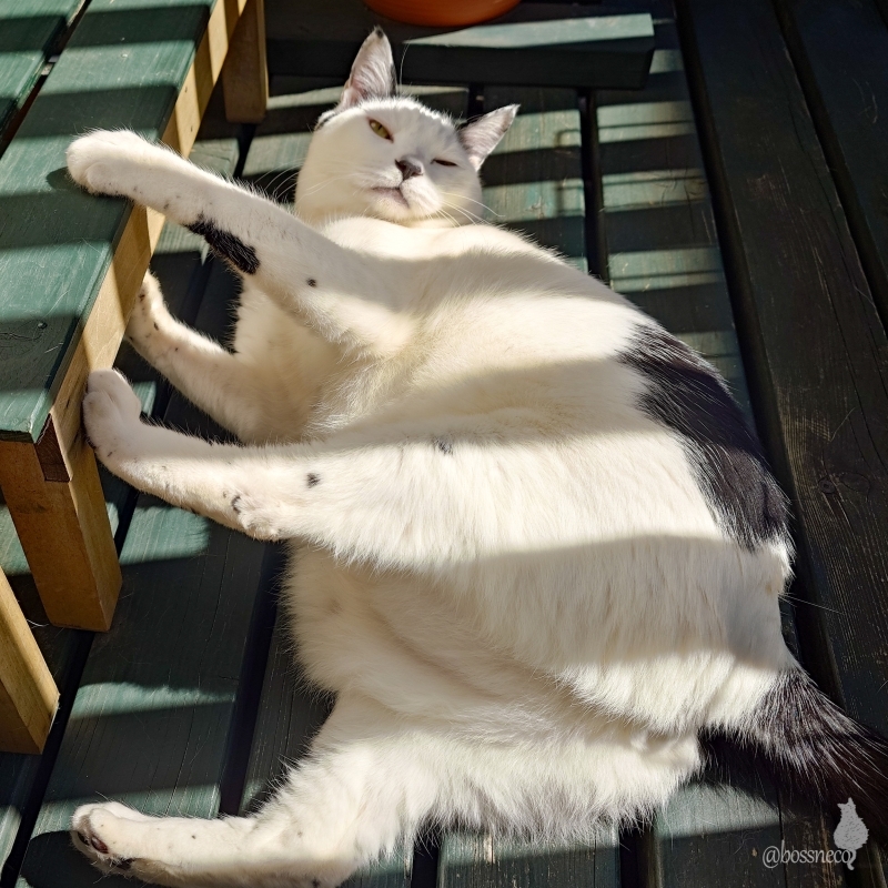 白猫Ryuのブルーアイ💎に映る長男白黒猫coco お天気良くてベランダがぽかぽかになったね☀ #猫部 @catclub.bsky.social #楽しい我が家 #こんな毎日が大切 #ブルーアイ #ベランダニャルソック — from Bluesky 2024-03-03