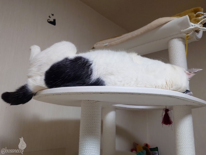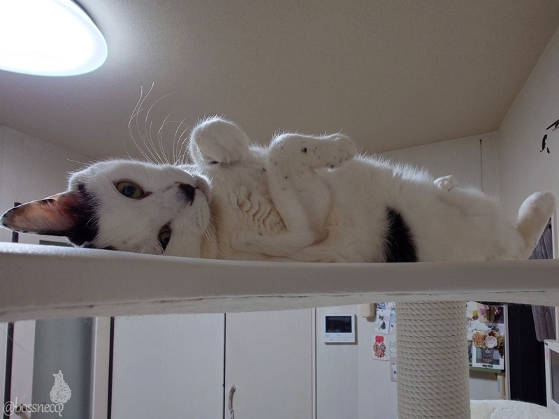 またそんなところでヘソ天になって.. で、お顔見てみたらかわいいことになってました💞 おやすみなさい💤 #Blueskyねこ部 #CatsofBlueSky #CatsofBSky #catsky #catlovers — from Bluesky 2026-02-25
