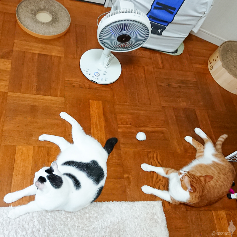 扇風機🌀の前のシンクロ兄弟👯♂️