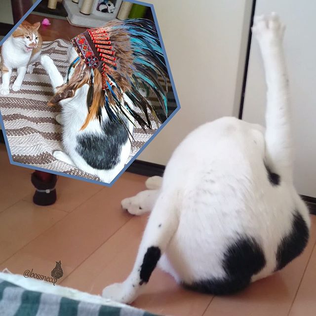 そして昨夜の動画で寅次郎くん♡小梅ちゃんママ @tora._._.ume さんからいただいたコメント『インディアン ウソつかな~い💂🌵』で大爆笑🤣させてもらったので、そのシーンを再現✨🤣