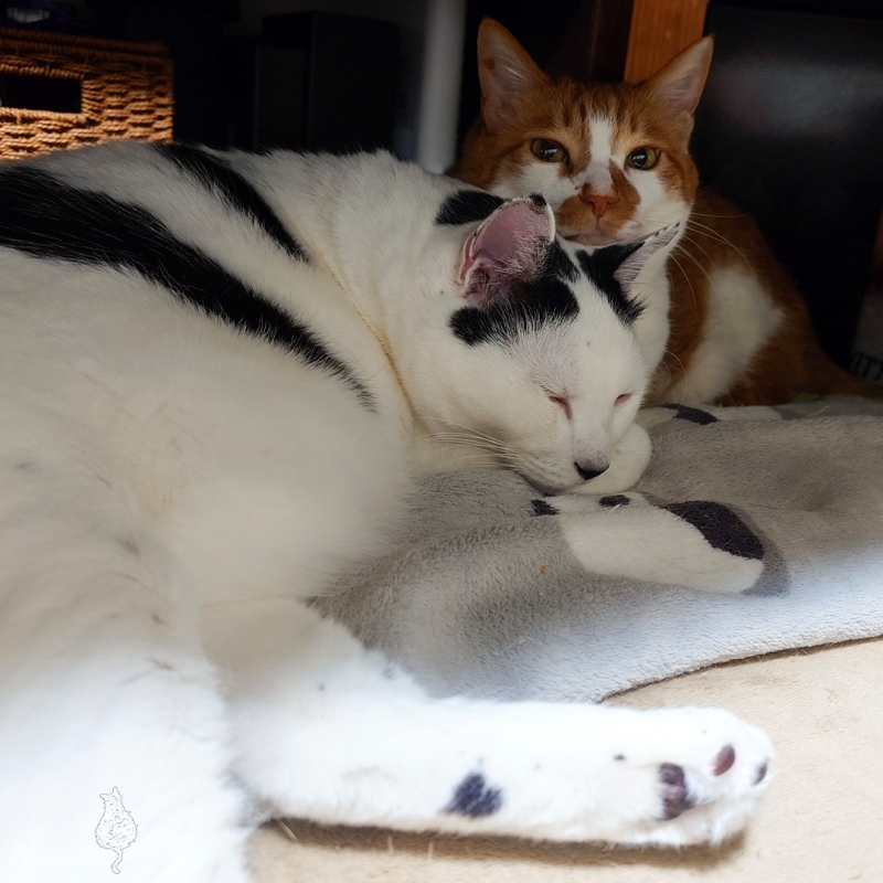 めずらしく兄ちゃんの頭を枕にして寛いでました
